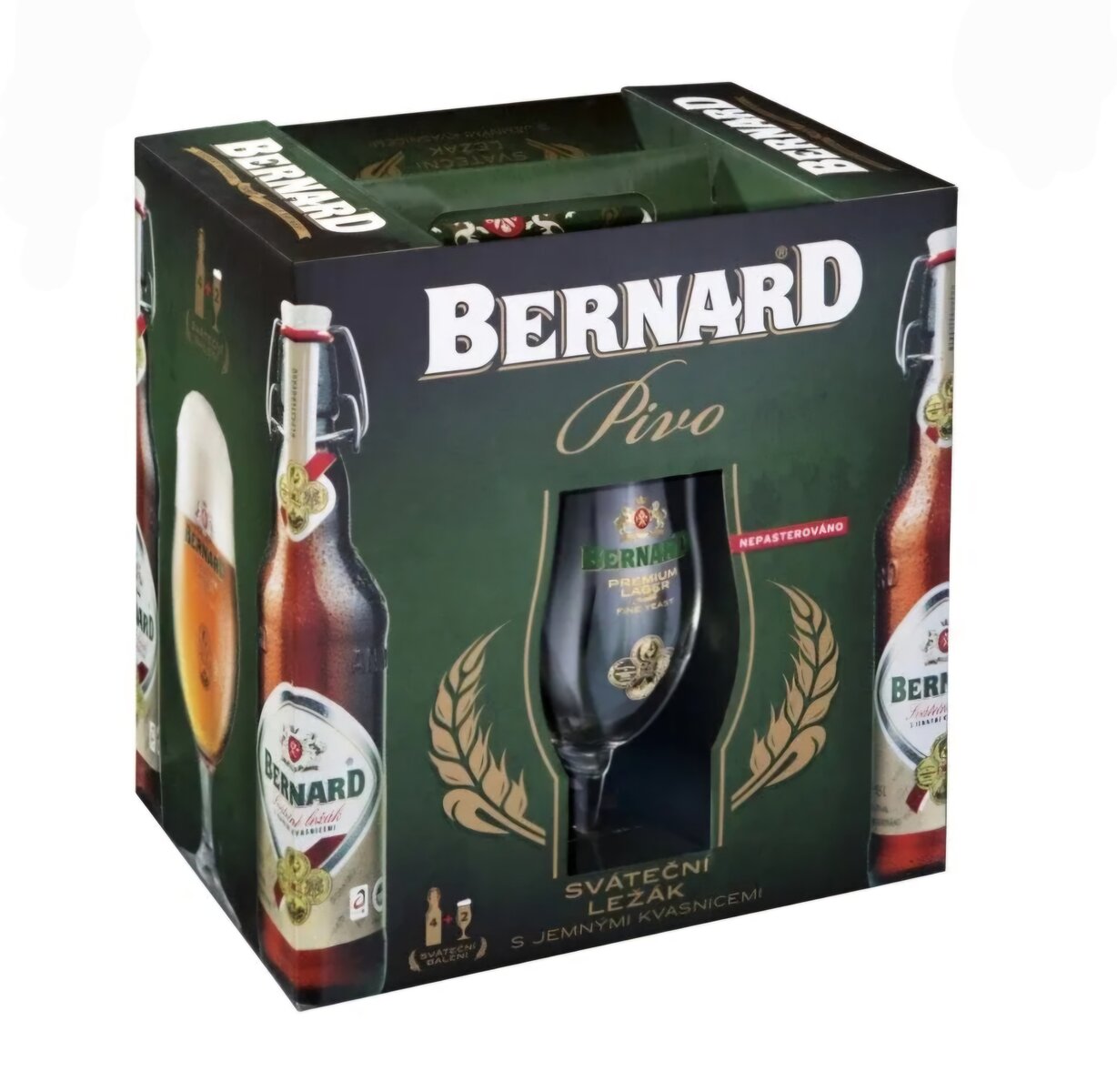 Bernard sváteční ležák 4x0,5l + 2x sklenice 0,4l